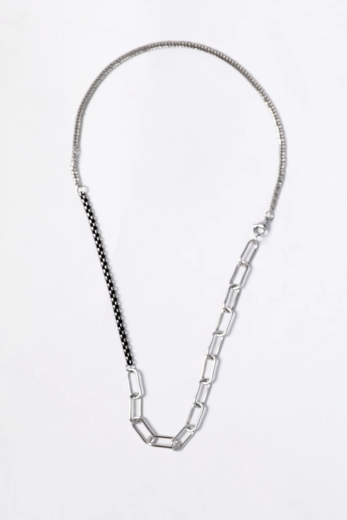 A mix of paperclip and box chain, blending two distinct styles in one piece.